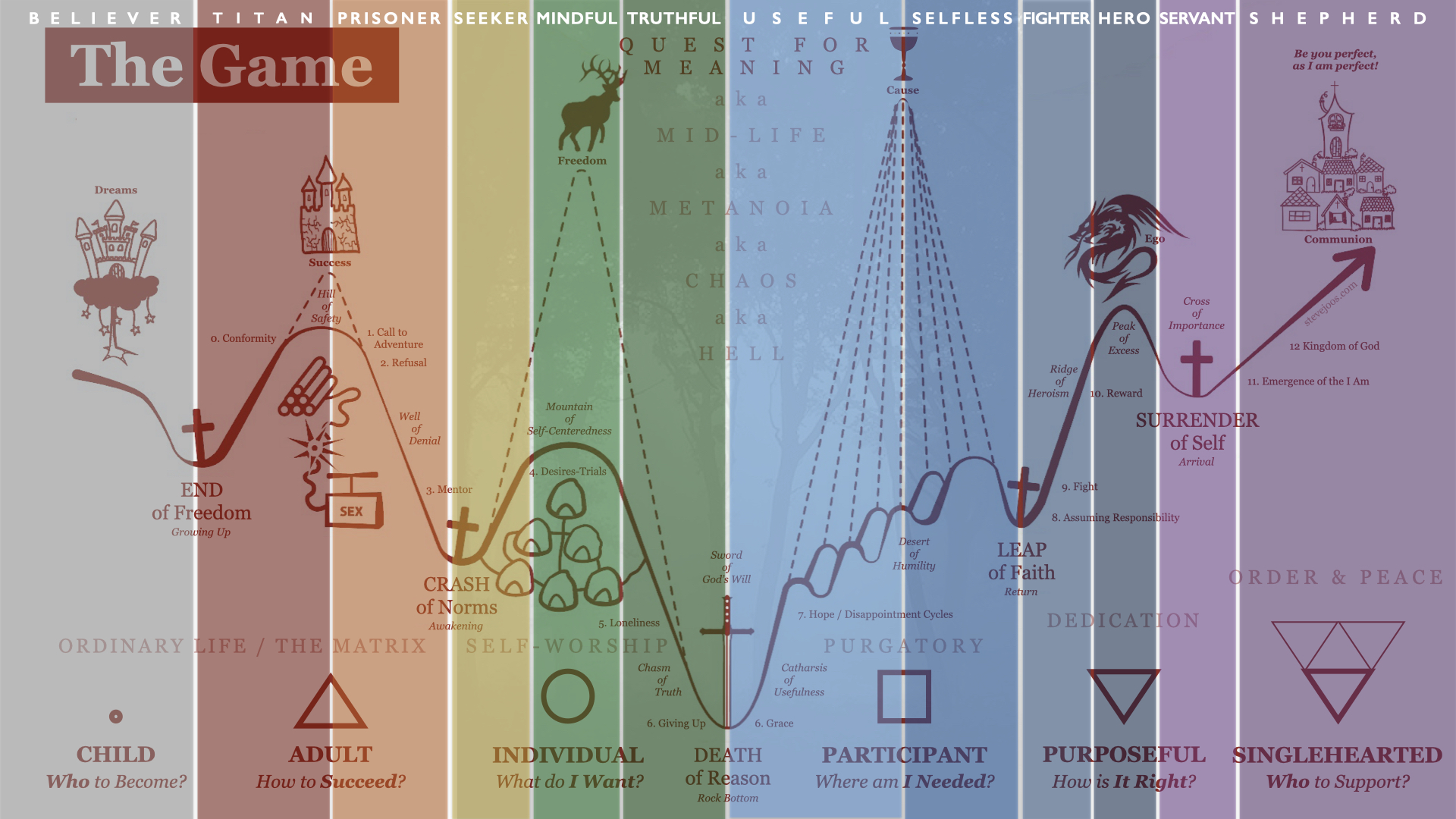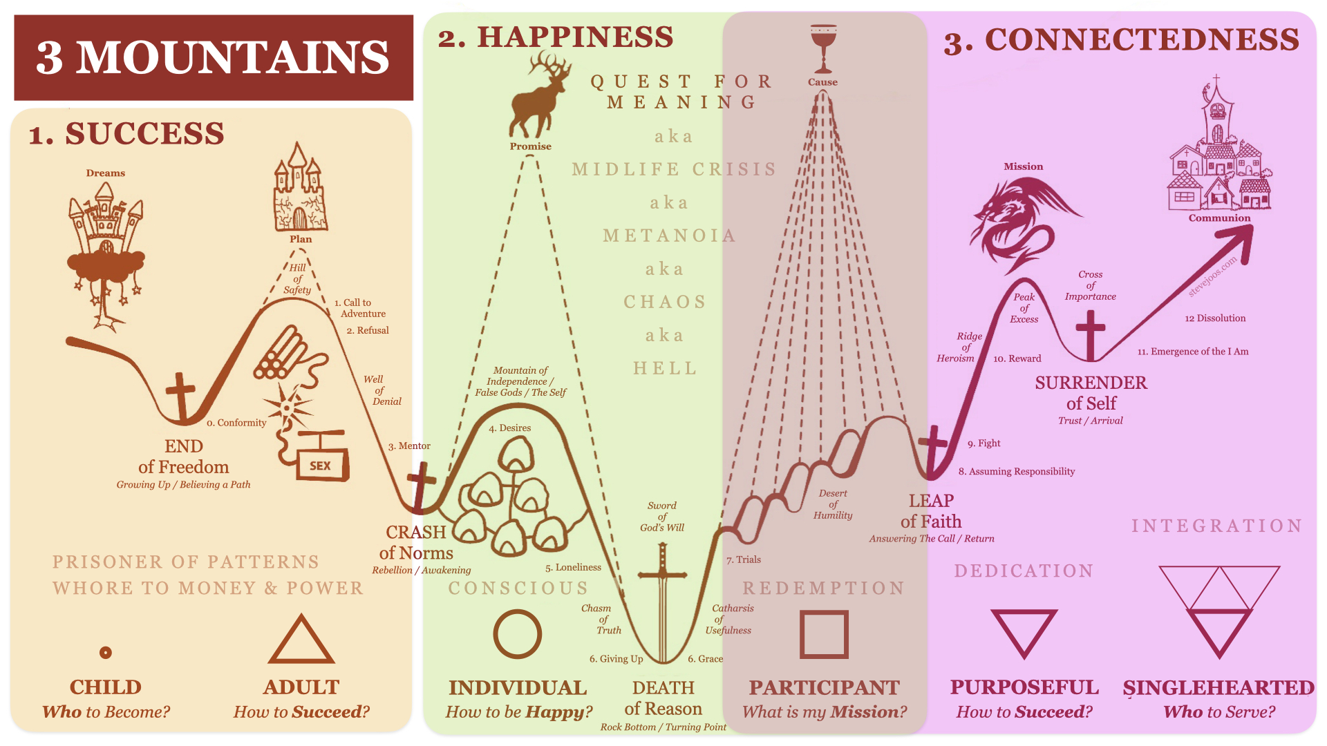 First version of the map (see above) was published in 2015, but it was too much for most people. Thus in 2020 Steve came up with a more simplified version, that resembles „The Hero’s Journey„