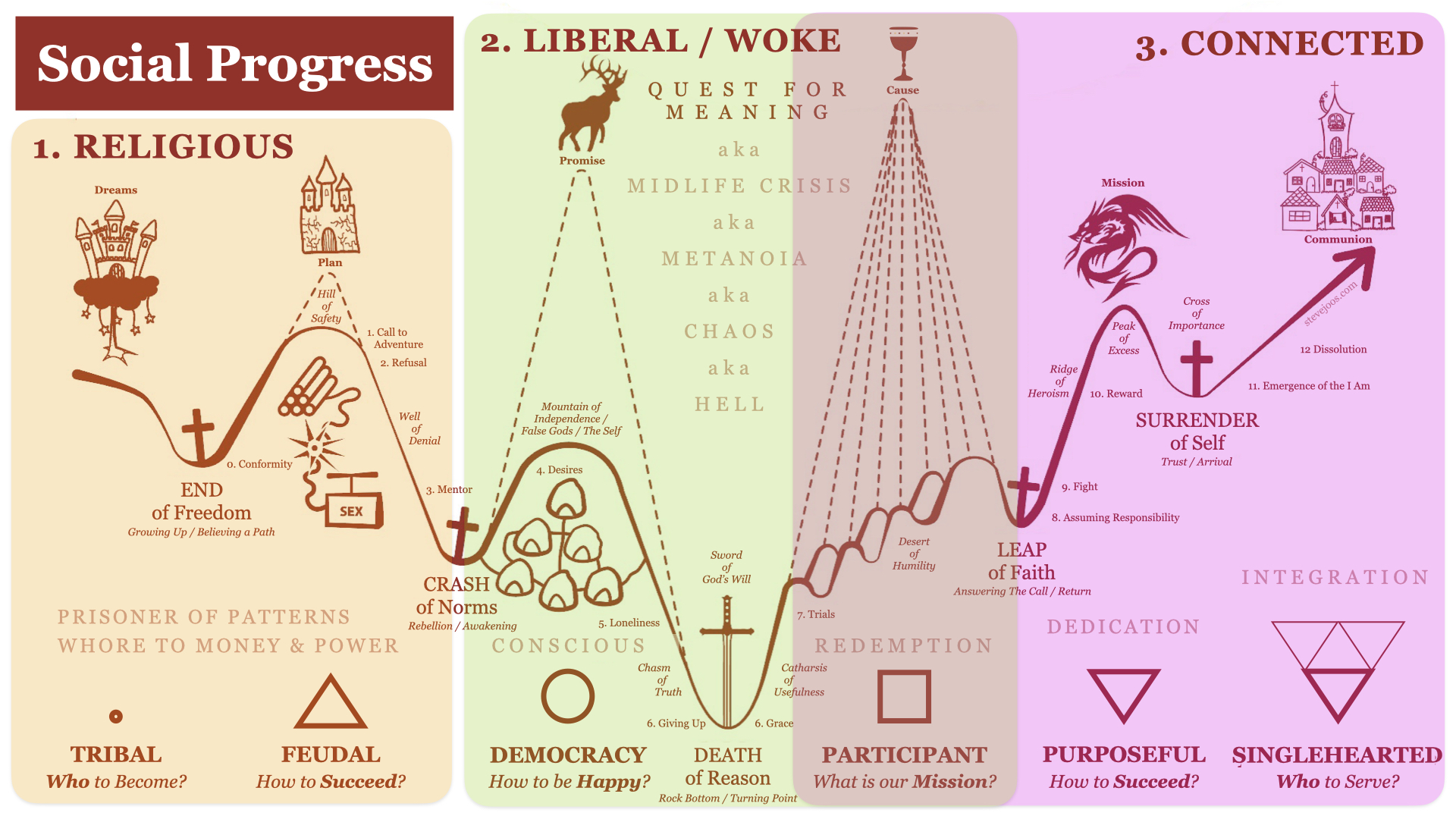 He came to the conclusion, that (1) people of our age can not be saved from their desires, but instead (2) one can help them embrace their personal Hell, in order to (3) faster reach the turning pont of the Prodigal Son. Hence latest version of the map. [painting by Bosch, icon by Jonathan Pageau]